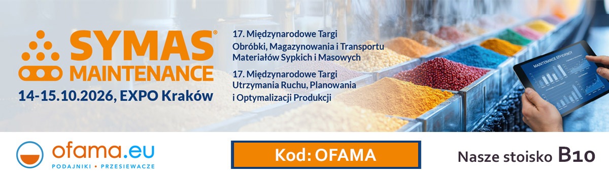 Firma OFAMA serdecznie zaprasza na 14 Międzynarodowe Targi Obróbki Magazynowania i Trasportu Materiałów Sypkich i Masowych SYMAS w Krakowie które odbędą się w dniach 18-19.10.2023r.